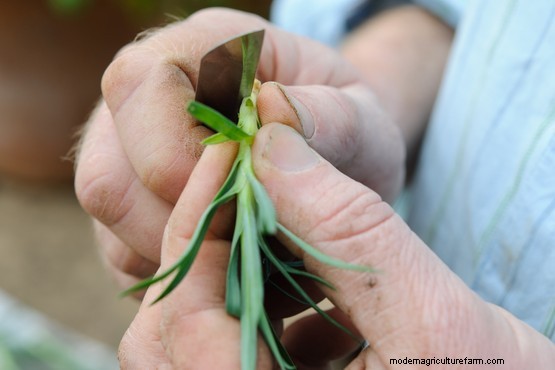 Prepare cuttings by trimming with a sharp knife just below the node where a pair of leaves joins the stem. Make a 2mm cut in the base of each cutting and remove the lowest leaf pair.