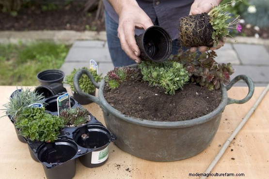 Place the plants in the pot, adding the taller ones towards the back. Firm them well and add more compost around them to fill in any gaps. Water the container and allow to drain.