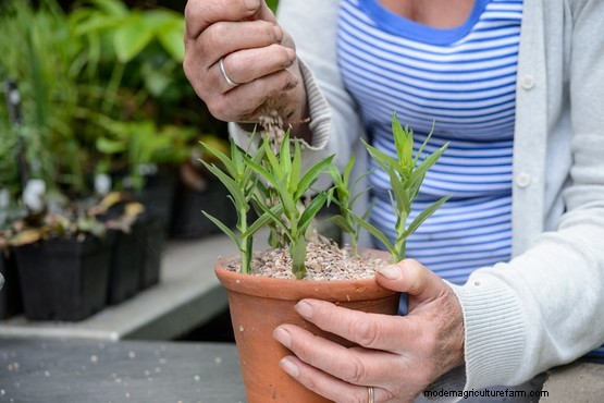 Fill a 10-12cm pot with gritty compost, then take five cuttings and push them in until the first leaves are at the same height as the edge. Finish with a layer of grit.