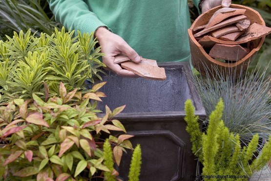 Place a layer of crocks or broken polystyrene on the bottom of your pot to ensure good drainage.