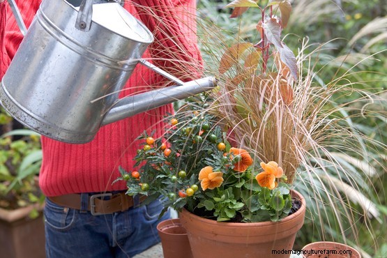 Water the container well and move it to its final position. It’s important not to let the compost dry out.