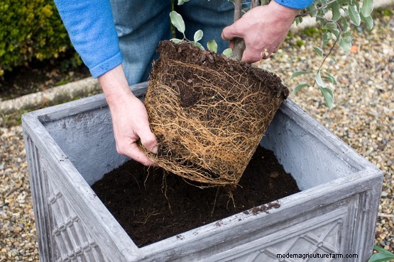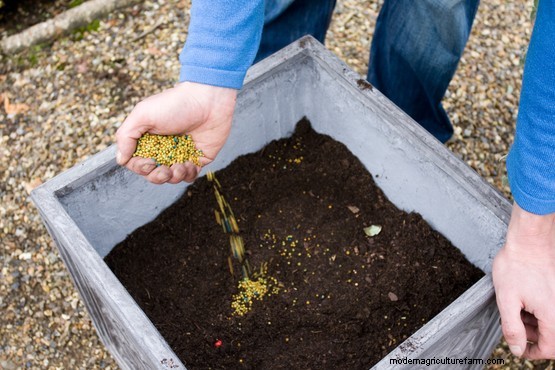 Fill the pot two-thirds full with multi-purpose compost and mix in some slow-release fertiliser granules.