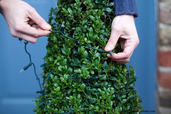Wrap the lights around the box cones. Make sure the bulbs are evenly spaced then connect to your power supply.
