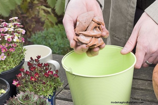 If using a metal bucket like ours, drill holes in the base to allow water to escape. Place a few crocks in the bottom of the bucket to improve drainage. Fill two-thirds with compost mixed with a few handfuls of grit and some slow-release fertiliser.