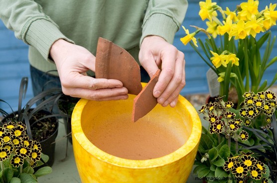 Place a few crocks in the bottom of the pot for drainage. You could also use broken polystyrene or small plastic plant pots.