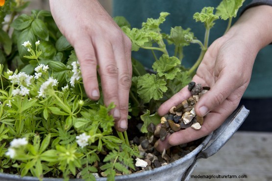 Top up with compost, firming it around the roots with your fingers, then add a mulch of gravel to conserve moisture.