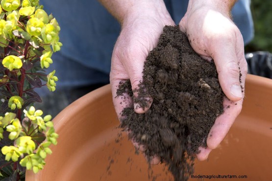 Cover the base of the pot with crocks, then fill it two-thirds full with compost.