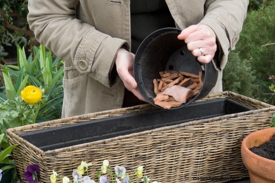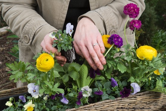 Create a jumble of flowers for a hanging basket full of cottage-garden charm. It’s also a way of making a big impact and injecting colour into a space. Petunias, geraniums, verbena and diascia all add to this informal scheme. When planting a hanging basket, choose a colour theme and stick to it – here a strict mix of pink and purple create a traditional look with a modern twist. Cram as many plants as possible into your basket – that will give you the best possible chance of creating an explos