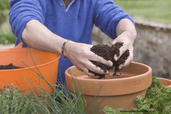 Use potting compost, planting the more moisture-loving annual or traditional herbs in the lower two tiers, and adding grit to the upper tier for Mediterranean herbs.