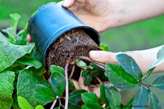 Add crocks to the base of the pot, then fill two-thirds with compost. Place the hellebores and primroses in position.