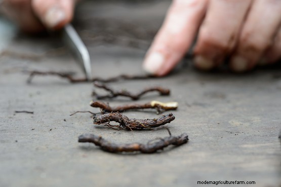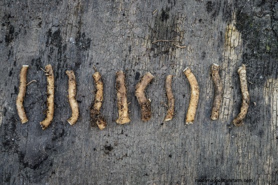 Expose the roots of a plant in the ground or take a new plant out of its pot. Select roots that are young, pale brown and slender – about 5mm thick.