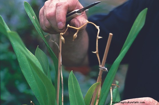 When the flowering period is over, the old flowering stem can be tidied up. Don’t be in too much of a hurry though as some orchids, such as phalaenopsis, often produce a sideshoot that will bear a second crop of flowers. Watch Alan Titchmarsh explain how to encourage a moth orchid to reflower.