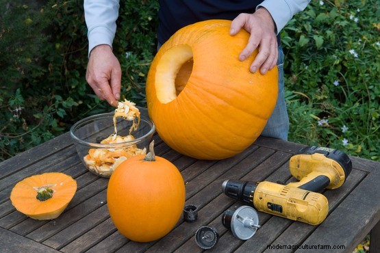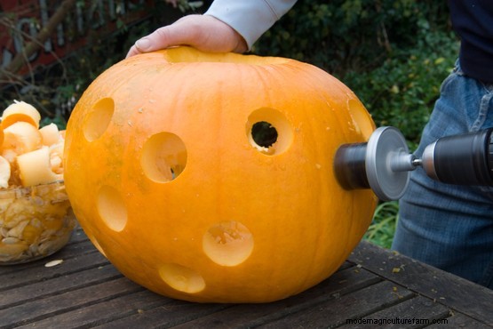 After more uses for your pumpkins and squashes? Try this pumpkin bird feeder, then use the flesh from inside in a composting trench, which will enrich the surrounding soil with nutrients.