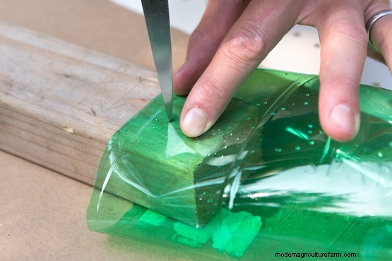 Use scissors to poke two holes either side of the hole you’ve just created, in the end of the bottle.
