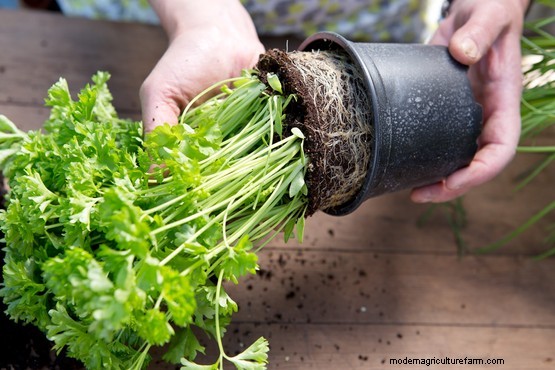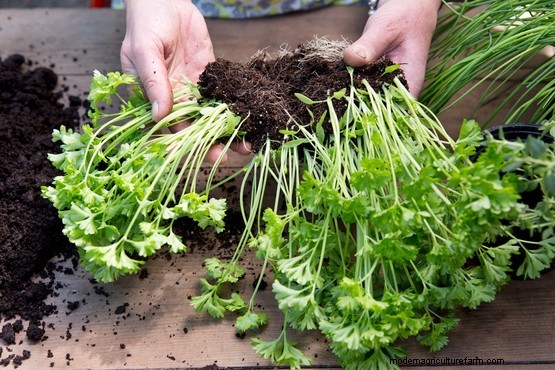 Gently pull the rootball apart to make several small clumps, each with a good set of roots. Shrubby herbs can be split into single plants, or a group of two or three.