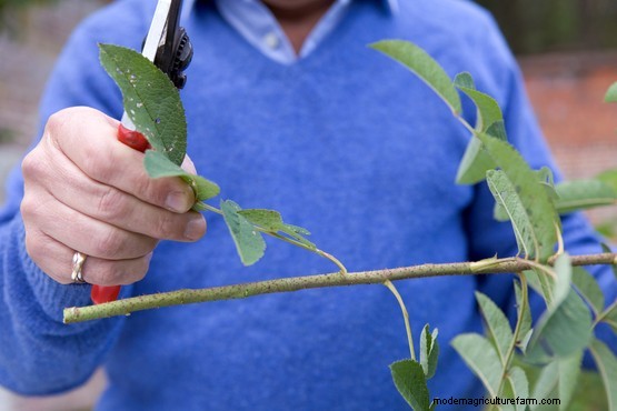 Make the cuttings 25cm long, cutting above a bud at the top to remove the shoot tip and below one at the base. Leave one leaf at the top and remove all the lower leaves.