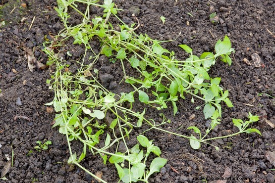 Chickweed is an annual that can be pulled out by hand or by hoeing – but avoid placing any that have matured to bear seeds onto the compost heap.