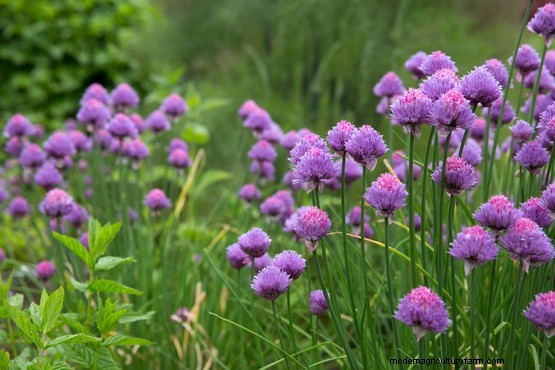 Mulch with well-rotted manure in autumn. Chives grow well in containers – use a soil-based compost and pot up annually in the spring, when the new growth appears. Onion fly, downy mildew and rust can be a problem – in mild cases, cut back hard, and in severe cases, dig up and bin the plants, taking care not to plant more members of the allium family in the same spot. Find out how to rejuvenate chives.