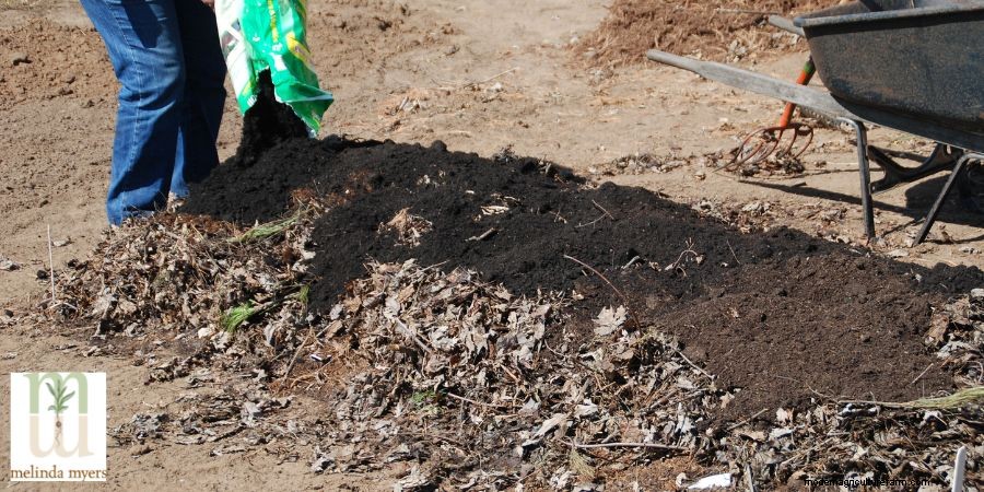 Next, add a 2 to 3-inch layer of peat moss or compost. Top this with 4 to 8 inches of plant debris such as leaves, plant-based kitchen scraps, herbicide-free grass clippings, straw, or other similar materials. Sprinkle a bit of fertilizer over this layer. I use low nitrogen slow-release Milorganite since it contains 85% organic matter and feeds the soil and plants. Cover with an inch of compost. Repeat the layers, just like making lasagna, until your garden is 18 to 24 inches high.
