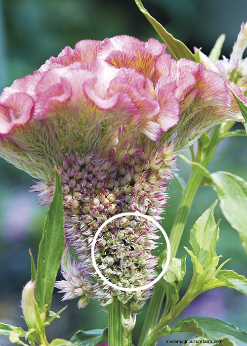 There are lots of celosia varieties you can start from seed and they’re pretty easy to get going. You can even save seeds from your own plants; just know that they may not grow flowers that match the color of those you collected the seeds from. The photo above gives you an idea of where to look for celosia seeds on cockscomb types, as they aren’t quite where you’d expect them to be. Seeds from plume and wheat celosia types can be harvested in a similar fashion.