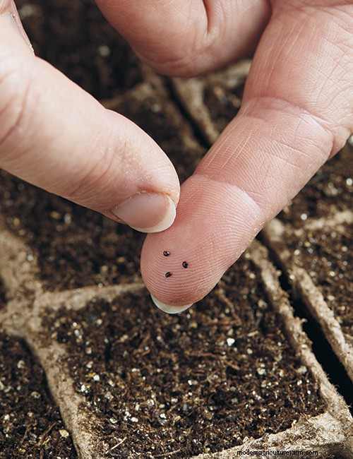 To give these tiny seeds the light they need to germinate, sow the seeds on the surface of seed-starting mix. I found it easy to pick up seeds on my fingertip and gently flick them onto the seed-starting mix.