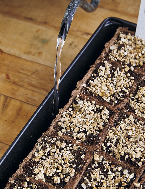 Start celosia seeds 6 to 8 weeks before your average last frost date by filling small peat pots with premoistened seedstarting mix. Peat pots are nice because later, you won’t have to disturb the tender roots to transplant — just plant the pot and it will eventually decompose.