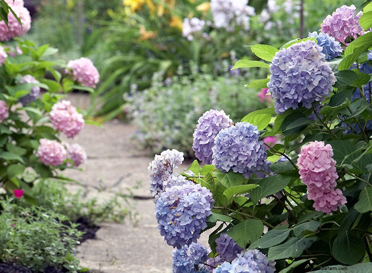 A neutral pH between acidic and alkaline will result in a color somewhere in the middle. Closer to alkaline, the flowers may tend toward pink in color, giving you lavender. More acidic and the color will look more purple with bluer tones. And, they may change slightly as they age from a blue-purple to a lavender pink.