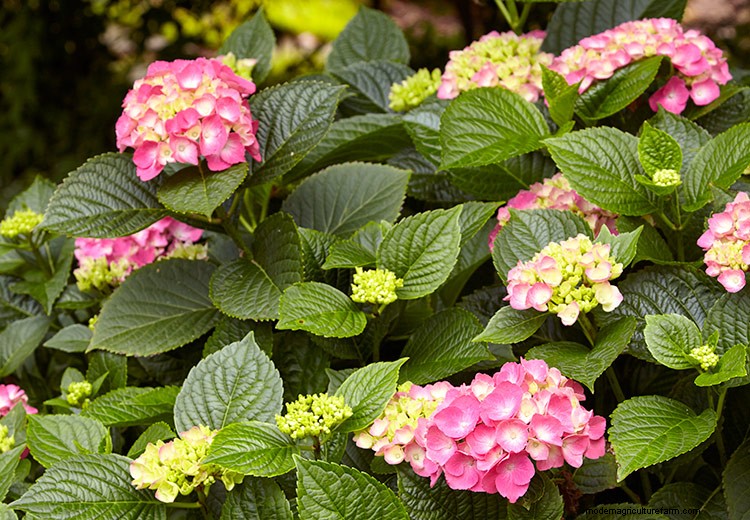 For a bigleaf hydrangea to bloom pink, a pH of 6.0 to 6.2 is ideal. Try one of these methods:
