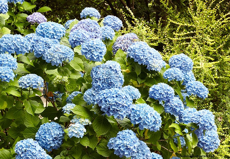 For a bigleaf hydrangea to bloom blue, pH of 5.2 to 5.5 is best. Try one of these methods: