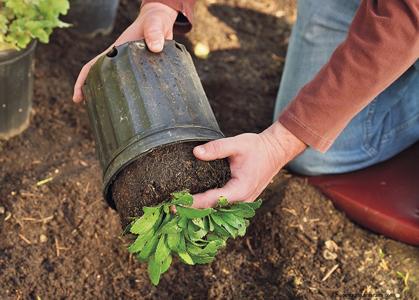 You may see roots circling at the bottom of the root ball. Pull them loose or they may continue to circle instead of spreading out into the soil, which can stunt or eventually even kill the plant. Don’t worry if a few roots tear — the plant will recover quickly.