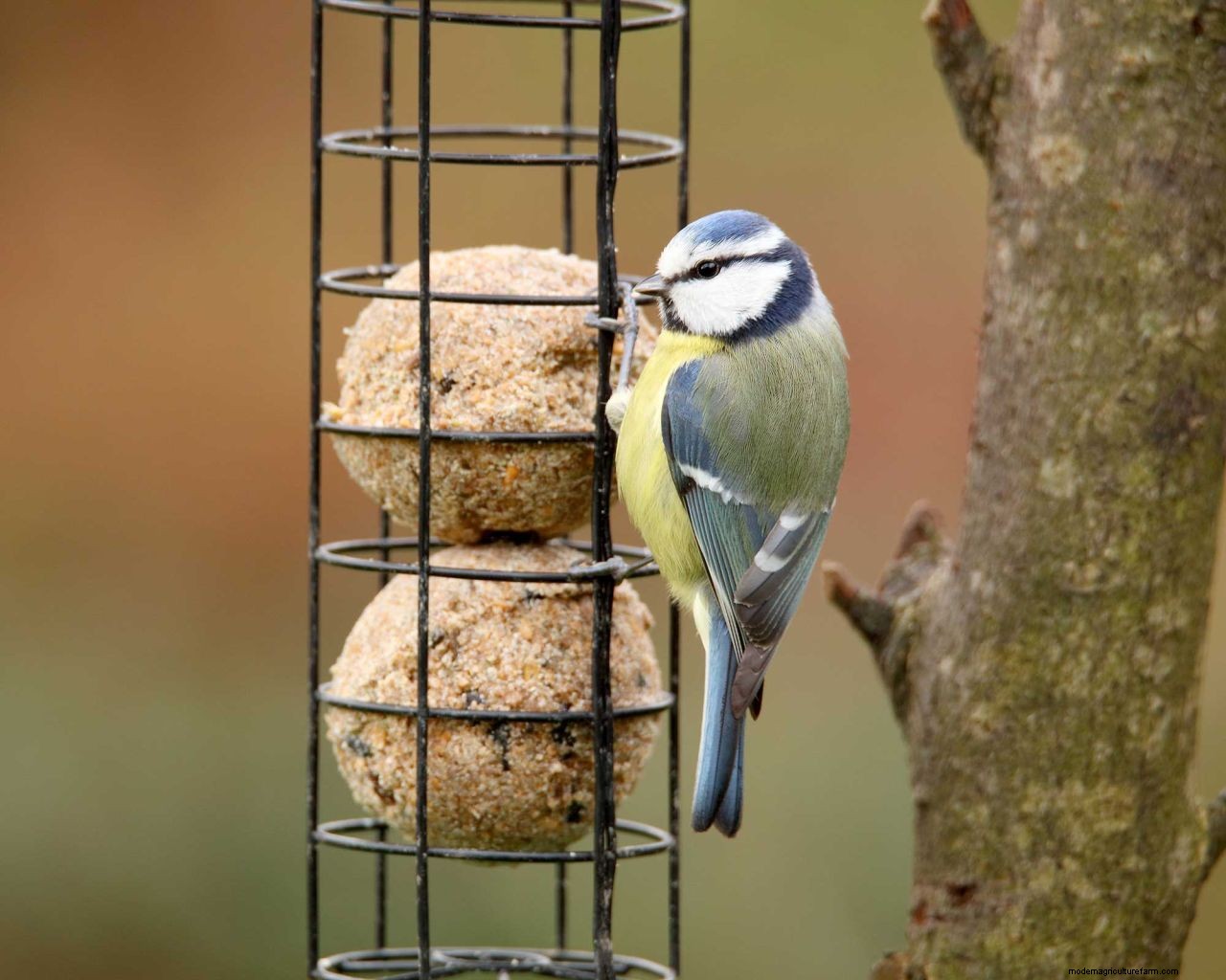 You can provide this as fat slabs or fat balls, Monty advises. There are specially designed cages for them.
