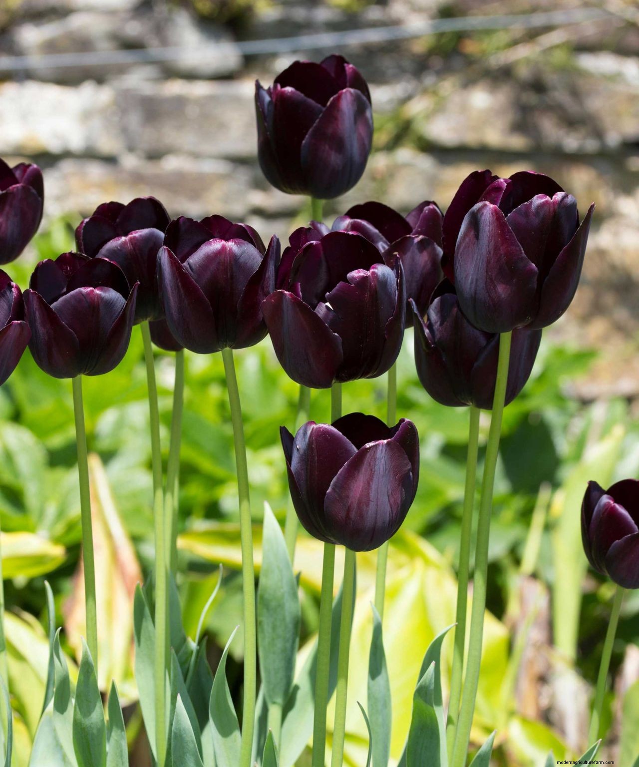 For a romantic cottage garden, go for the generous blooms of double- and peony-flowered tulips and the frilly parrot varieties. 'Shirley' is a soft blush pink-lilac with darker ripples, or go for the large flowers of 'Bella Blush', which looks effective planted in a mass. For a dramatic statement, 'Queen of the Night' with its dark purple-black petals looks super-stylish on its own, or it can be planted alongside a contrasting color such as orange or white.