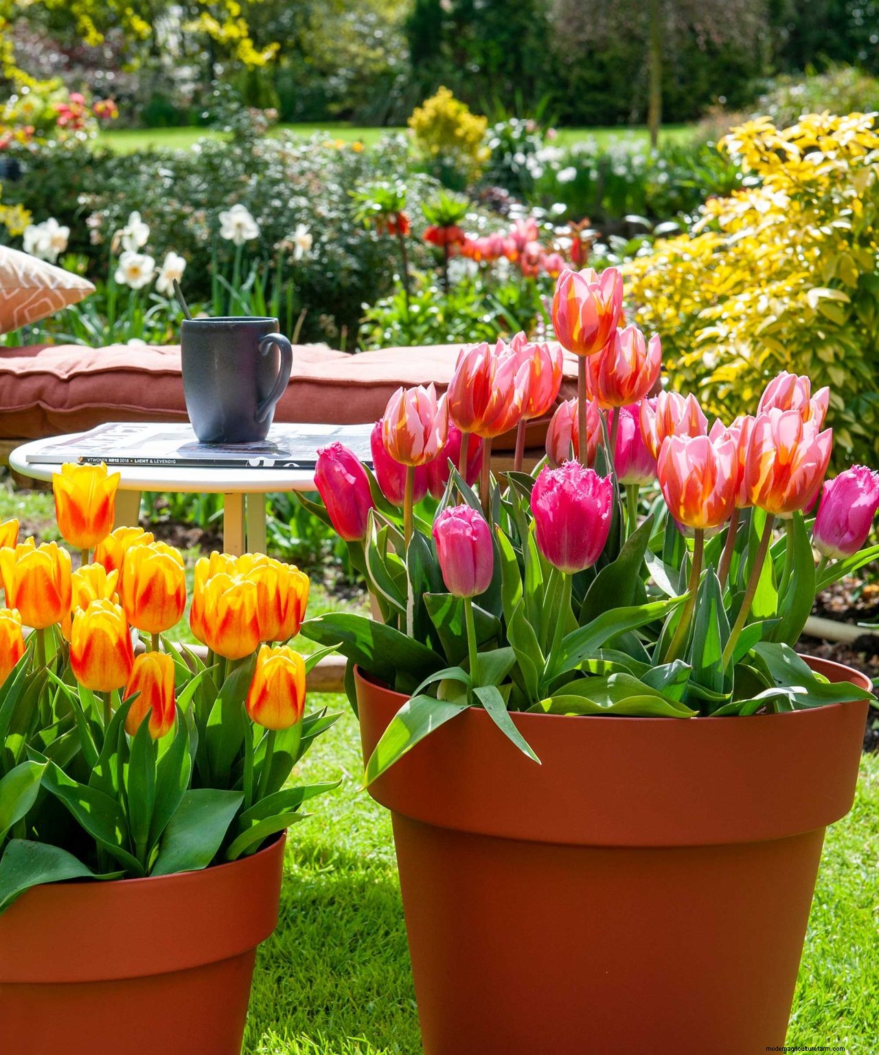 Tulips are a perfect choice if you're looking for spring container gardening ideas. There is nothing like a bright display of them at the front of the house or on a patio before the summer blooms have sprung into life.