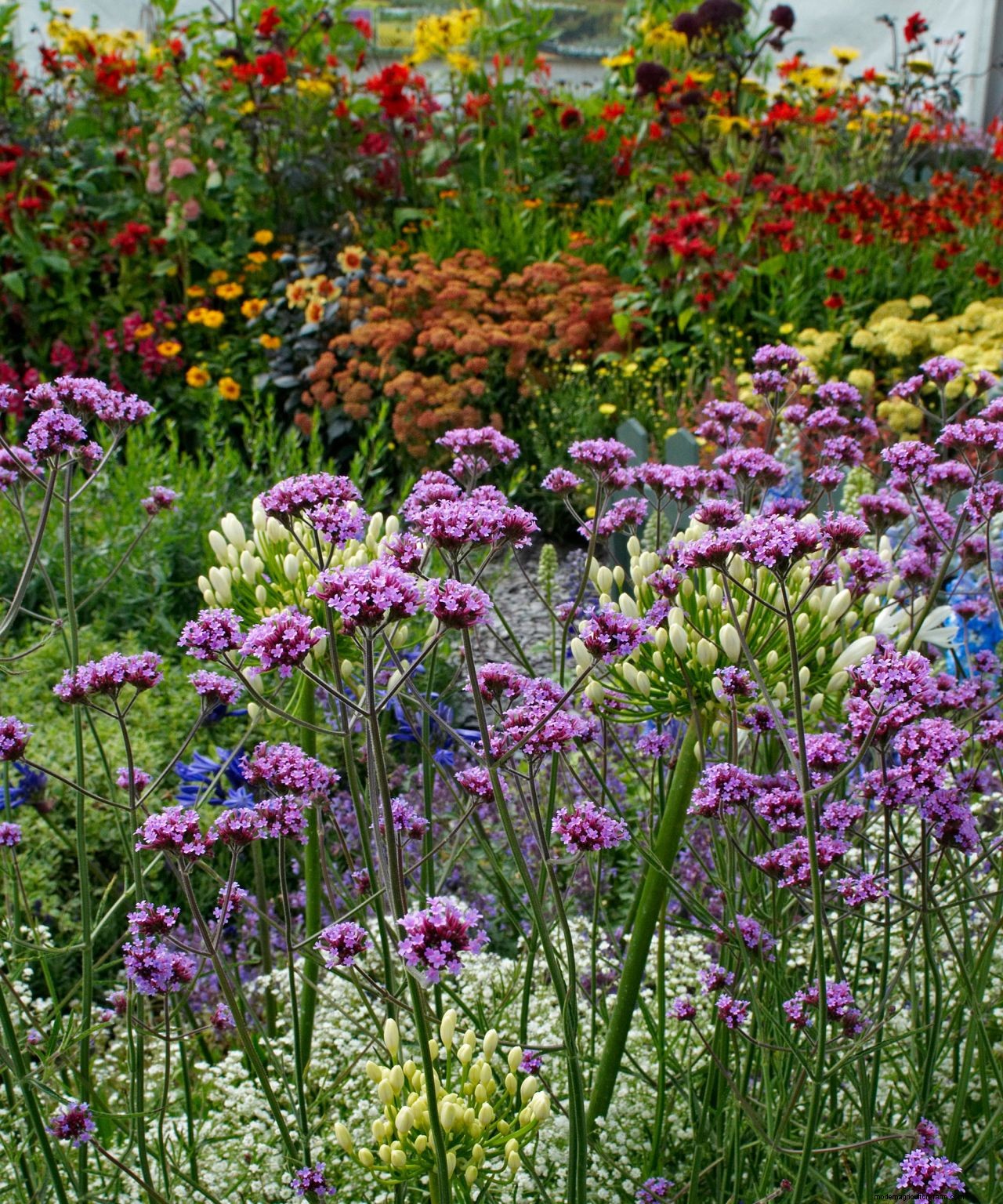 Swaying ornamental grasses are one of my favorite plants to use in a scheme, and they require very little maintenance. Balance the softness of these with more architectural shaped plants like alliums or phlomis for a contrasted look that works almost all year round.
