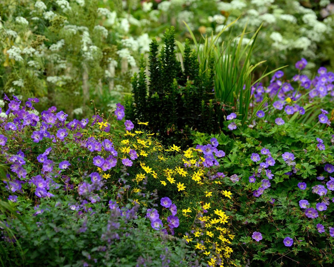 Next, it’s the smaller seasonal plants that will create interest at different stages in the year, then finally the plants that are supporting acts, like clumps of geraniums or evergreen types of ornamental grasses that will be the reliable foundations of your scheme.