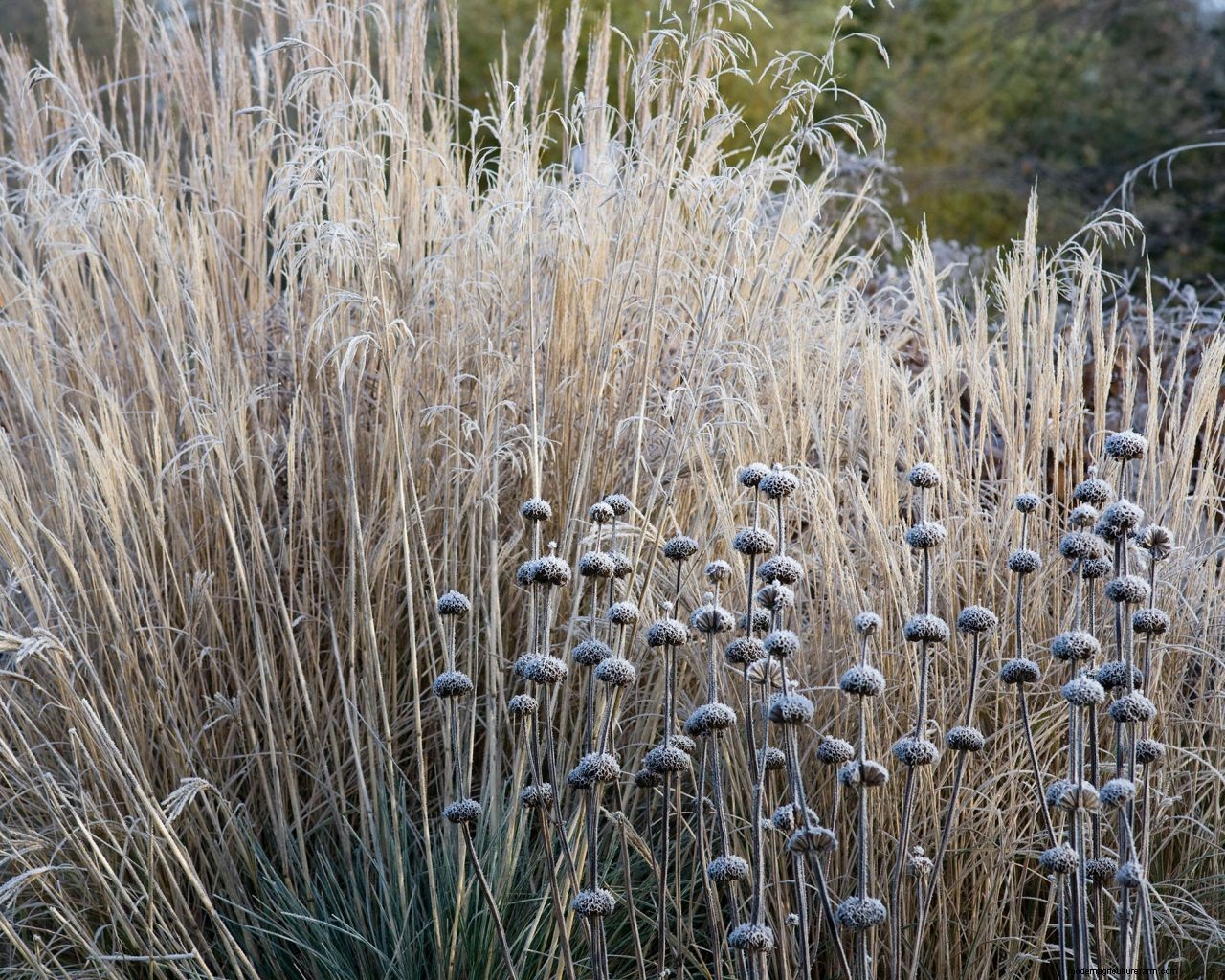 For example, if you were to leave allium seedheads on after they’ve gone over, they look stunning in a frost or in the late low sun of a winter’s afternoon, sparkling in the winter landscaping. Equally phlomis, erygiums, sanguisorbas, sedums, teasels and many more plants can be left in borders after they’ve ‘gone over’ to be enjoyed all through the winter.