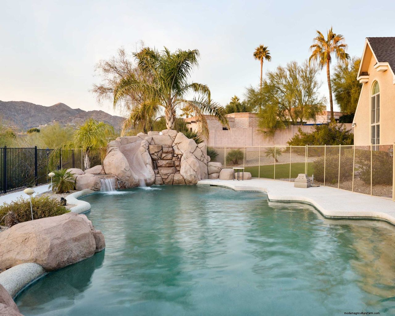 When using this method, ensure that the water coming out of the pool is discharged safely away from the pool landscaping ideas. Verdun suggests a distance of around 66–98ft (20–30m) away so that the water does not build up pressure behind the pool wall.