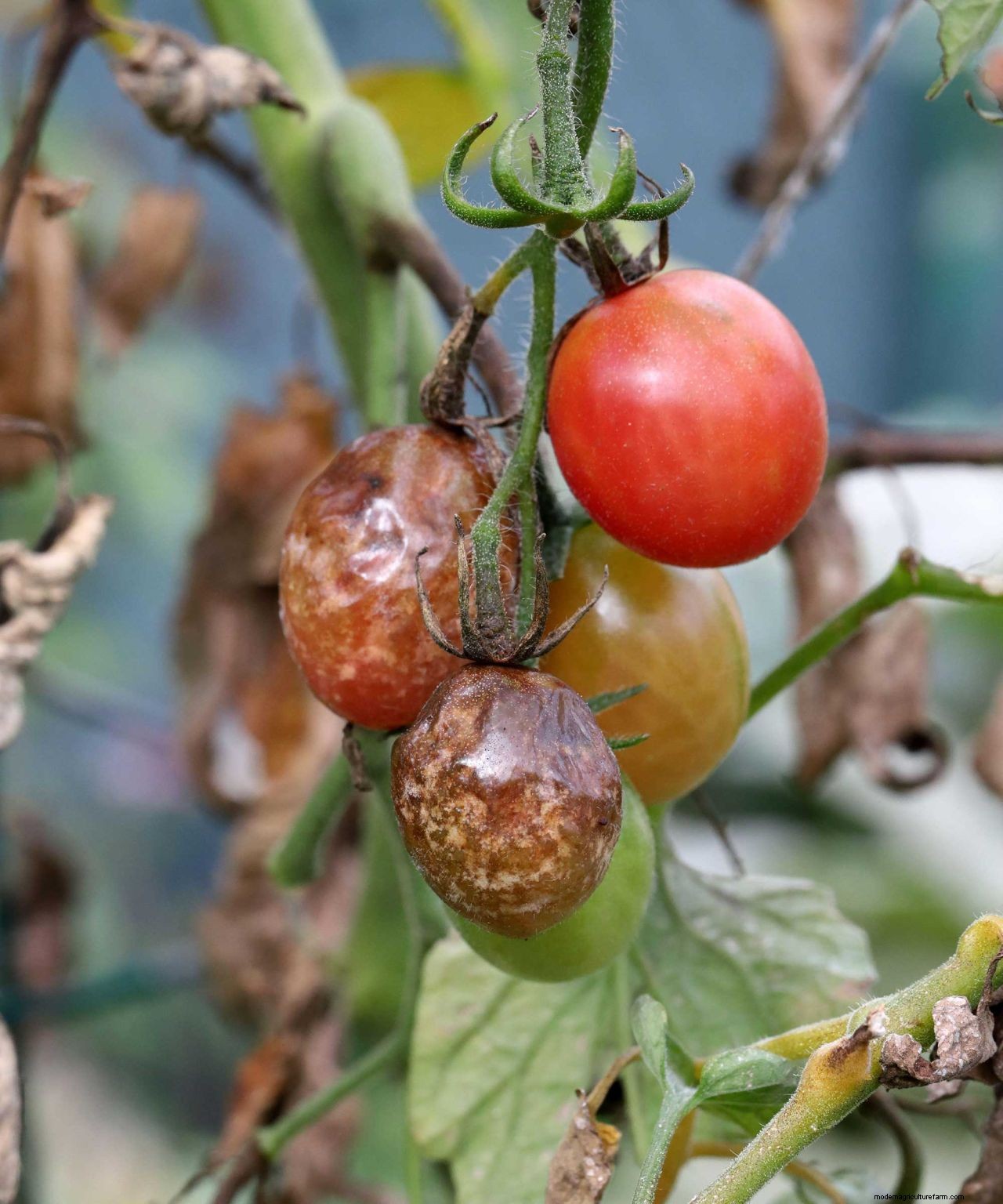 It is most troublesome with outdoor-grown tomatoes, such as those in raised garden beds, although those grown in a greenhouse can also suffer. Once plants become infected, the fruits and foliage quickly start to decay and the stems collapse.
