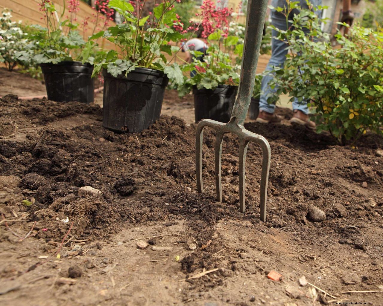 - Prepare the planting area by forking it over and removing any weeds and large stones. If the soil is very sandy and dry or has not been amended recently, add bagged garden soil, garden compost, or rotted manure to improve the moisture-holding capacity and add nutrients.