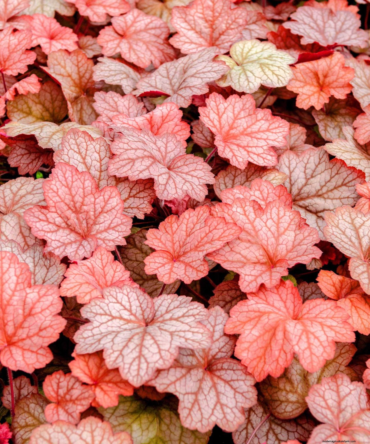 Heucheras, sometimes known by their common names of coral bells or alumroot, are neat and hardy perennial plants. Suitable for both sun or shade, they are grown mainly for their foliage.