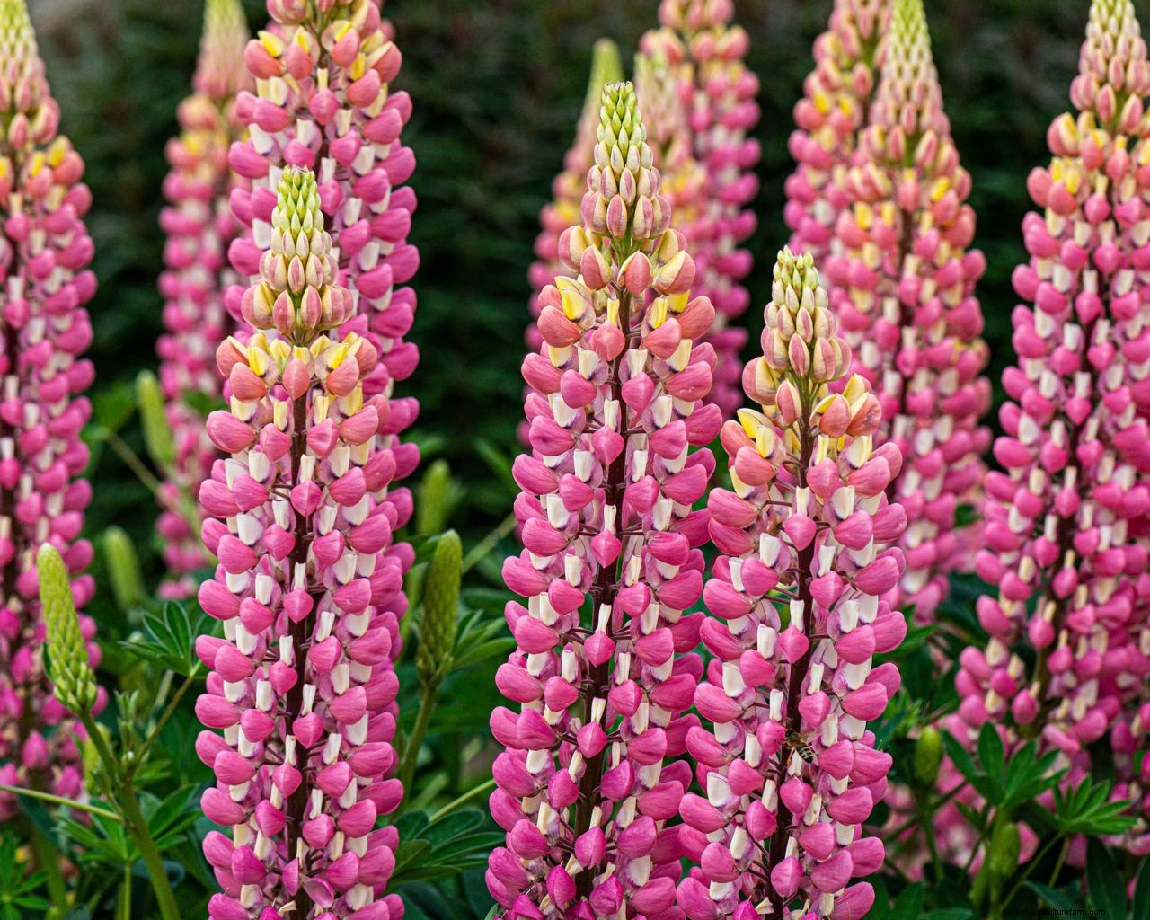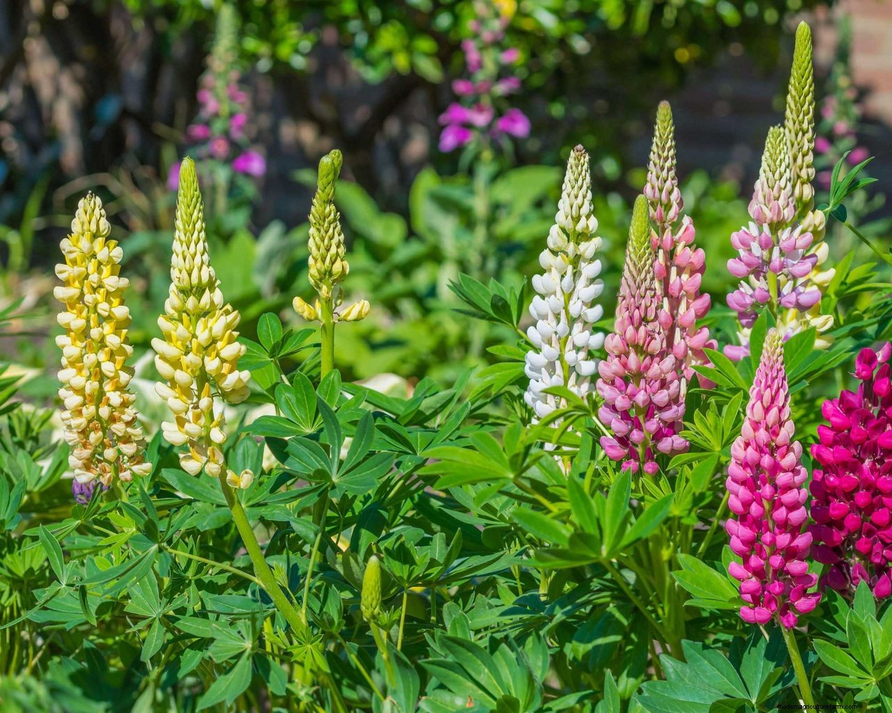 - Perennial lupins: Most lupins that we see are brightly colorful and easy to grow (though relatively short-lived) hardy perennials for USDA zones 5–8. The densely packed spires come in just about every color, with some astonishing bicolored varieties, all set against bold foliage.