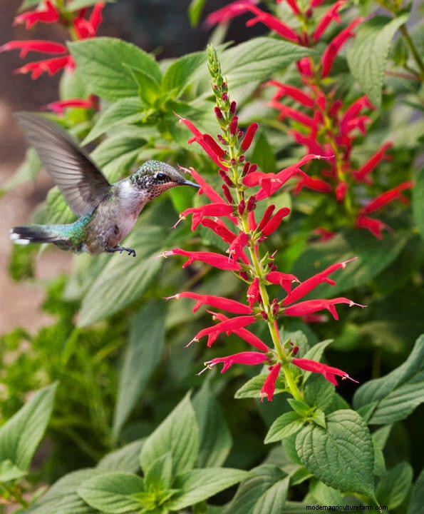Named for the uncanny pineapple scent of its foliage, pineapple sage is worth the wait. It is a seasonal treat that gives gardeners a sense of anticipation. A small plant set out in spring after the danger of frost has passed will grow into a branching plant 3 to 4 feet tall and nearly as wide by the time it blooms. It will then sprout spires of cardinal-red blooms in late summer and fall, just in time to refuel hummingbirds and butterflies for their fall migration. If you live in an area that does not freeze, blooms will continue all winter and sometimes all year.
