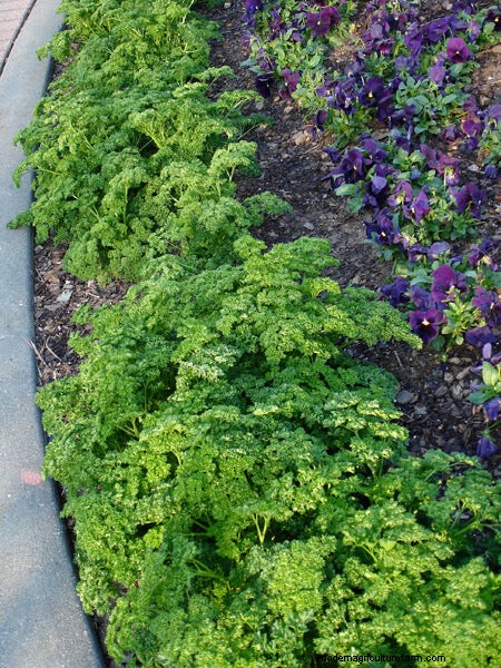 Plant in the spring (or in fall in zones 7 and warmer). Normal winters in the South and Southwest provide wonderful growing conditions for parsley and many gardeners use it in pots and flower beds as a green foliage filler with pansies and violas for winter. For the summer, Italian flat-leafed parsley is a bit more heat tolerant than curly parsley.