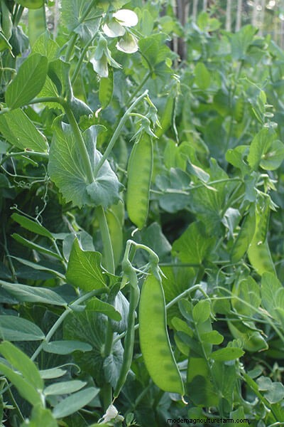 Withhold water slightly during the early growing phase to encourage deeper rooting (peas tend to be shallowly rooted). Watering is critical from the appearance of the first flower until harvest. Peas need consistent moisture to develop full, flavorful pods.