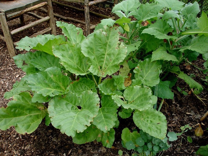 - Give rhubarb room to spread out by planting them 4 to 6 feet apart.