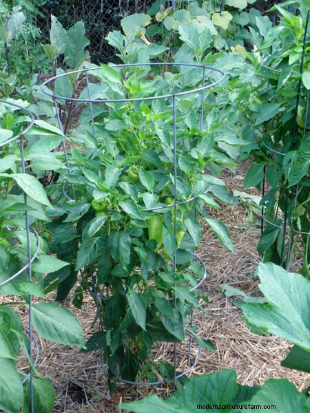 - Support each pepper plant with a stake or small tomato cage, to help bear the weight of the fruit once it begins to produce.