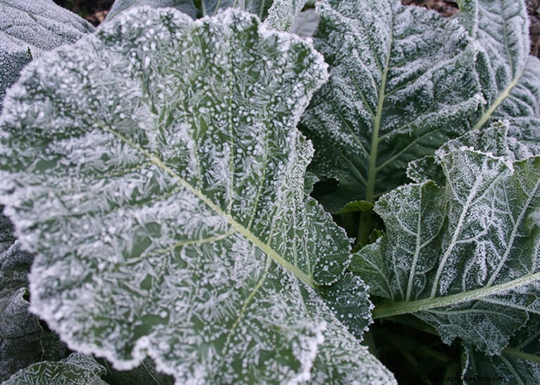 Harvest leaves when they are up to 10 inches long, dark green, and still young. Old leaves may be tough or stringy. Pick the lower leaves first, working your way up the plant. You can even harvest leaves when frozen in the garden, but be careful because the frozen plant is brittle. Of course, wash the leaves thoroughly before using them in collard greens recipes, because soil often clings to the undersides. Collard leaves will keep for several days in the refrigerator.