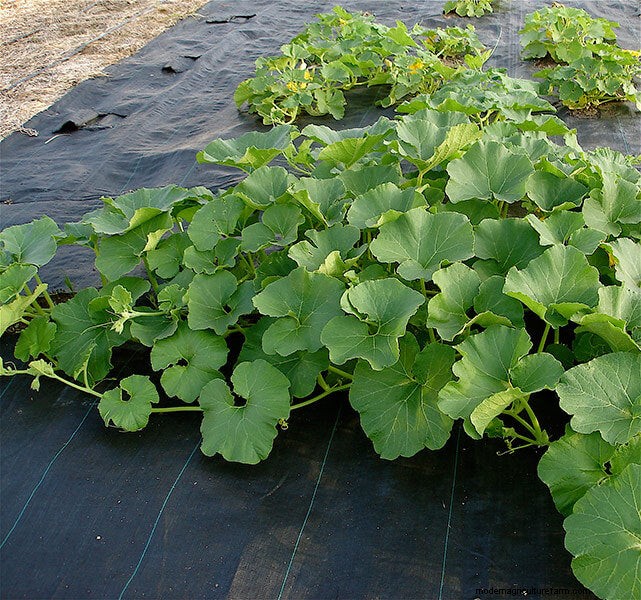 Tackle weeds before vines start to run, because later it will be impossible to step among vines without crushing them. Mulching soil under vines suppresses weeds and slows moisture evaporation from the soil. Of course, if you planted in a black cover, that is already done.