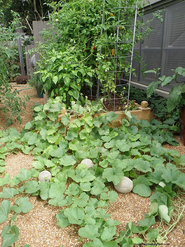 For vines running on the ground, keep fruit from direct contact with soil to prevent rot and protect fruit from pests. Place ripening fruit on mulch, upturned coffee cans, or flower pots. If large critters such as groundhogs discover your melons, protect ripening fruits by covering them with plastic milk crates or similar boxes weighted down with a few bricks.