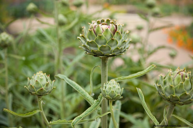 - Harvest artichoke buds when they're about 3 inches in diameter; they should be tightly packed and firm.